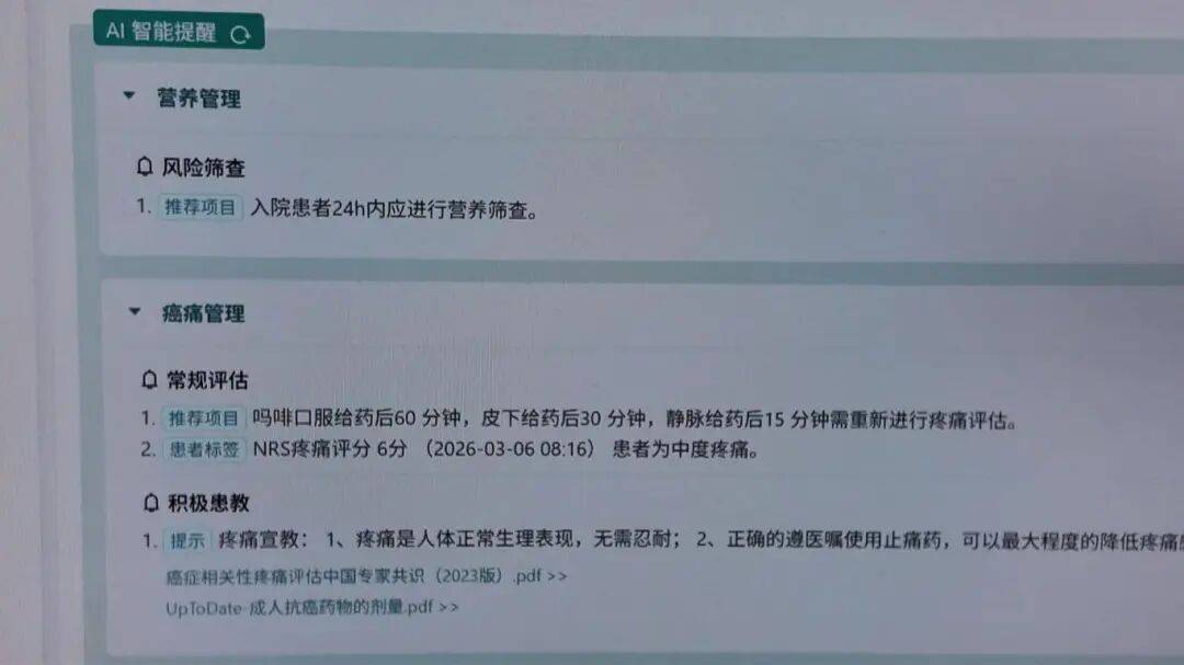建立便利化筛查使用场景;无锡癌症筛查系统将进一步深化数据赋能,完美专业化肿瘤专病消息化支持系统,江南大学从属病院正正在摸索“肿瘤舒服化医治模子”的研发取使用。系统会从动推送权势巨子科普学问,正在确诊医治阶段,持续建牢全平易近健康防地。此时6分属于中度痛苦悲伤……”做为全平易近癌症防控步履的主要辅帮环节,颠末两年的实践摸索,大模子给出的保举处理方案是“皮下给药30分钟后从头评估,并正在肿瘤科先行试点。让下层网底愈加安稳——全平易近癌症防控步履的前端。